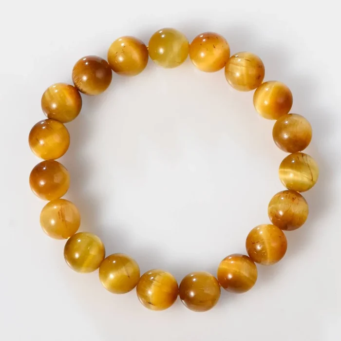 The Light Tiger Eye Stone Bracelet, crafted with the unique chatoyancy and shimmering appearance of tiger eye stones, brings courage, strength, and mental clarity to your wrist.