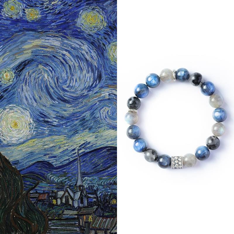 Inspired by Van Gogh’s masterpiece “Starry Night,” the Van Gogh Starry Sky Crystal Bracelet combines the mystical glow of moonstone and Blue Rutilated Quartz, bringing the brilliance of art to your wrist.