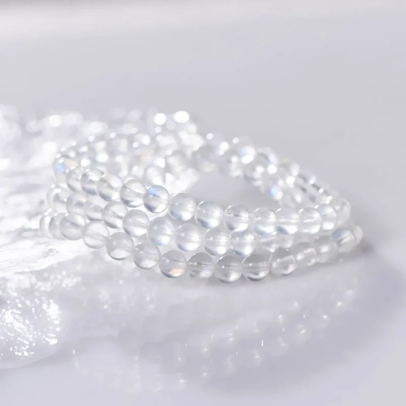 The “White Moonstone Bracelet” is a meticulously crafted piece of jewelry that interweaves moonstone beads to create a multi-layered bracelet that is more than just an accessory; it is a talisman carrying healing energy and profound intent. This bracelet features white moonstone as the central gemstone, each stone emitting a mysterious and noble luster, earning it the title of the stone of attraction. Moonstone, as a type of moonstone bracelet, has been historically associated with the cycles and energies of the moon, symbolizing emotional harmony and abundance.